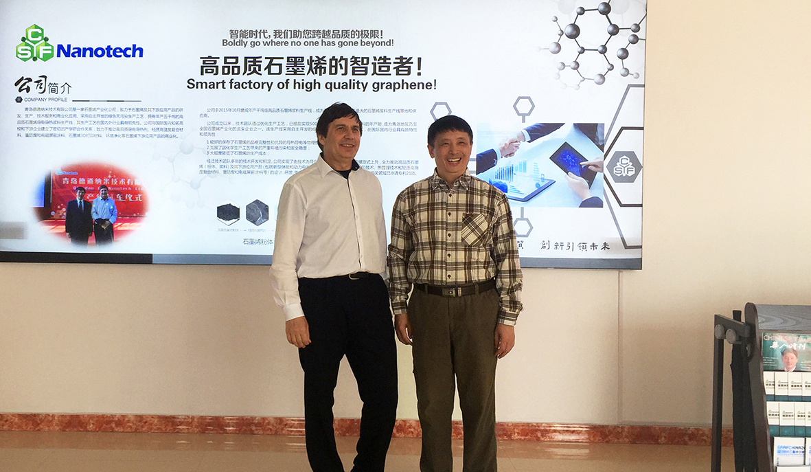 2017年4月14日,诺贝尔物理学奖获得者英国曼彻斯特大学教授安德烈·海姆作为合伙人来到青岛德通纳米科技有限公司, 详细了解了公司的发展情况和子公司青岛德安新碳复合材料有限公司的建设进展。