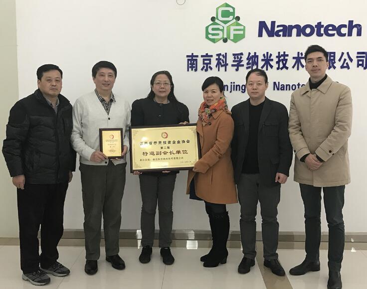 16日上午,江苏省侨办经科处处长省侨商会秘书长朱荣玲、省侨商会副秘书长刘和南一行,莅临南京科孚纳米技术有限公司考察。浦口区侨办主任叶明才和浦口区海峡两岸科工园干晟副主任参与接待。