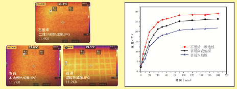 图五、实验对比表明:同等条件下,石墨烯二维地板热传导效率更高,更加节能。